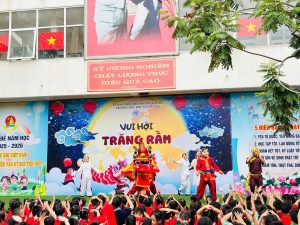 🧸 Một trong những phần hấp dẫn nhất chính là múa rối kết hợp Lân – Sư – Rồng. Các em nhỏ reo hò thích thú khi nhìn thấy những chú lân tung tăng nhảy múa, chú Cuội, chị Hằng xuất hiện sinh động như bước ra từ cổ tích.